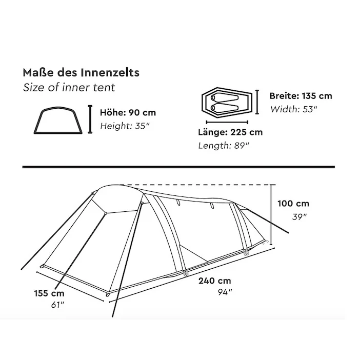 - Leichtgewichts-Doppeldach-Tunnelzelt fĂĽr zwei Personen